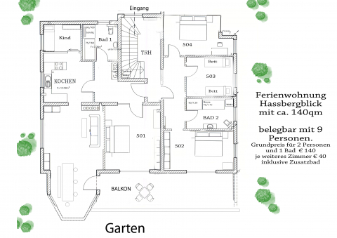 Neben unserem Biergarten mit Liegewiese und Tretbecken, entstand eine kleine modern eingerichtete Villa mit nun 5 Ferienwohnungen.